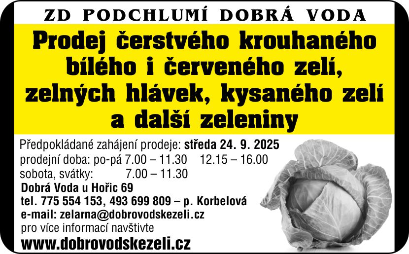 Prodej krouhaného zelí v Dobré Vodě.